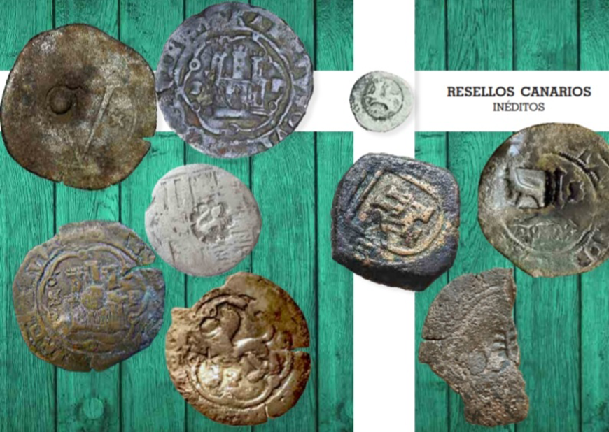Sin duda alguna, el pilar que sustenta nuestro estudio es el abundante y poco conocido conjunto de resellos canarios. En la actualidad, contamos con ejemplares de seis de las siete islas, continuando con la labor de localizar ejemplares de la isla de La Gomera, de la que, pese a tener algún indicio interesante, no se ha podido concretar marca propia de esta isla de señorío.
